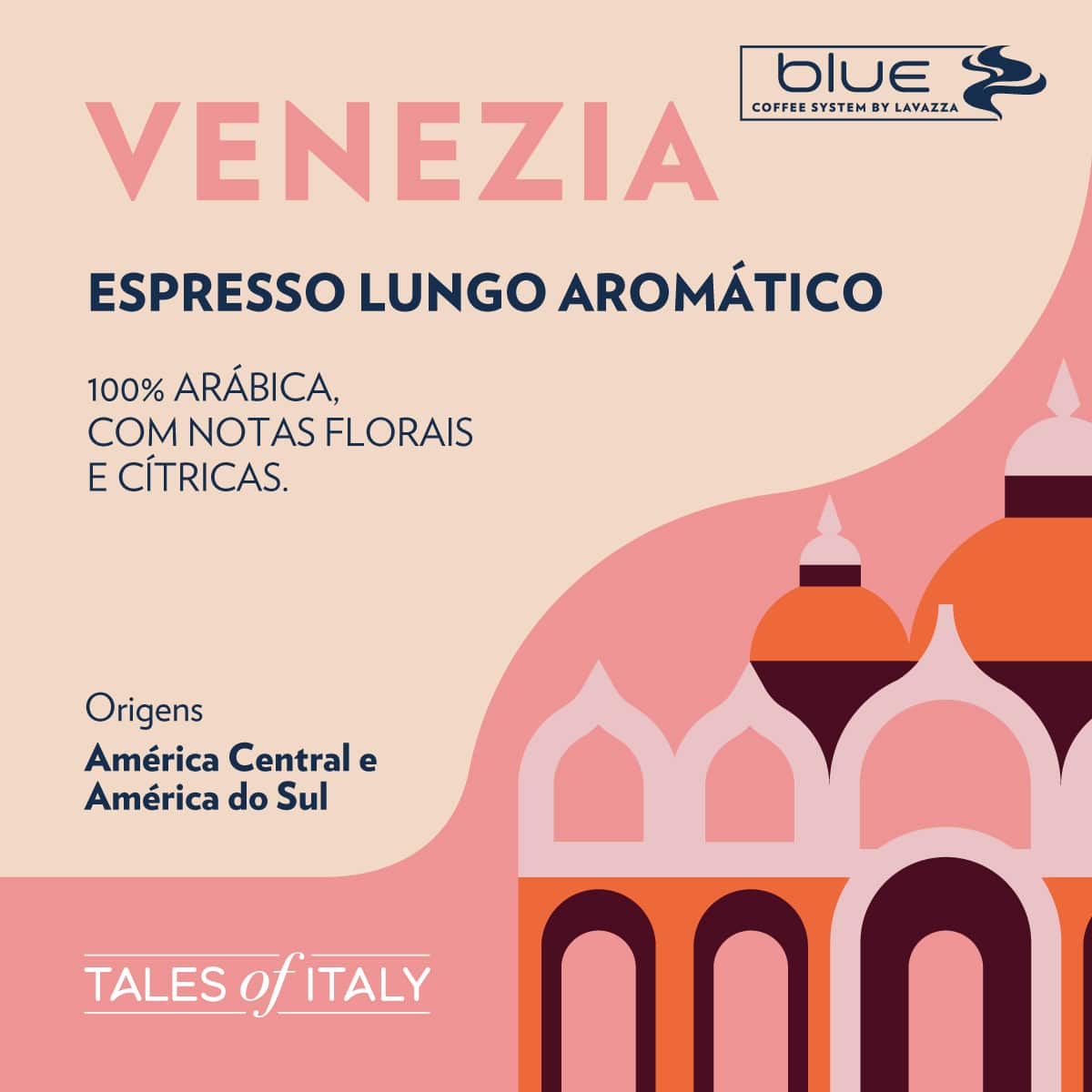 Deixe-se envolver pelos encantadores canais de Venezia com este blend 100% Arábica da América Central e do Sul. Um espresso lungo delicado e aromático, com uma crema persistente.