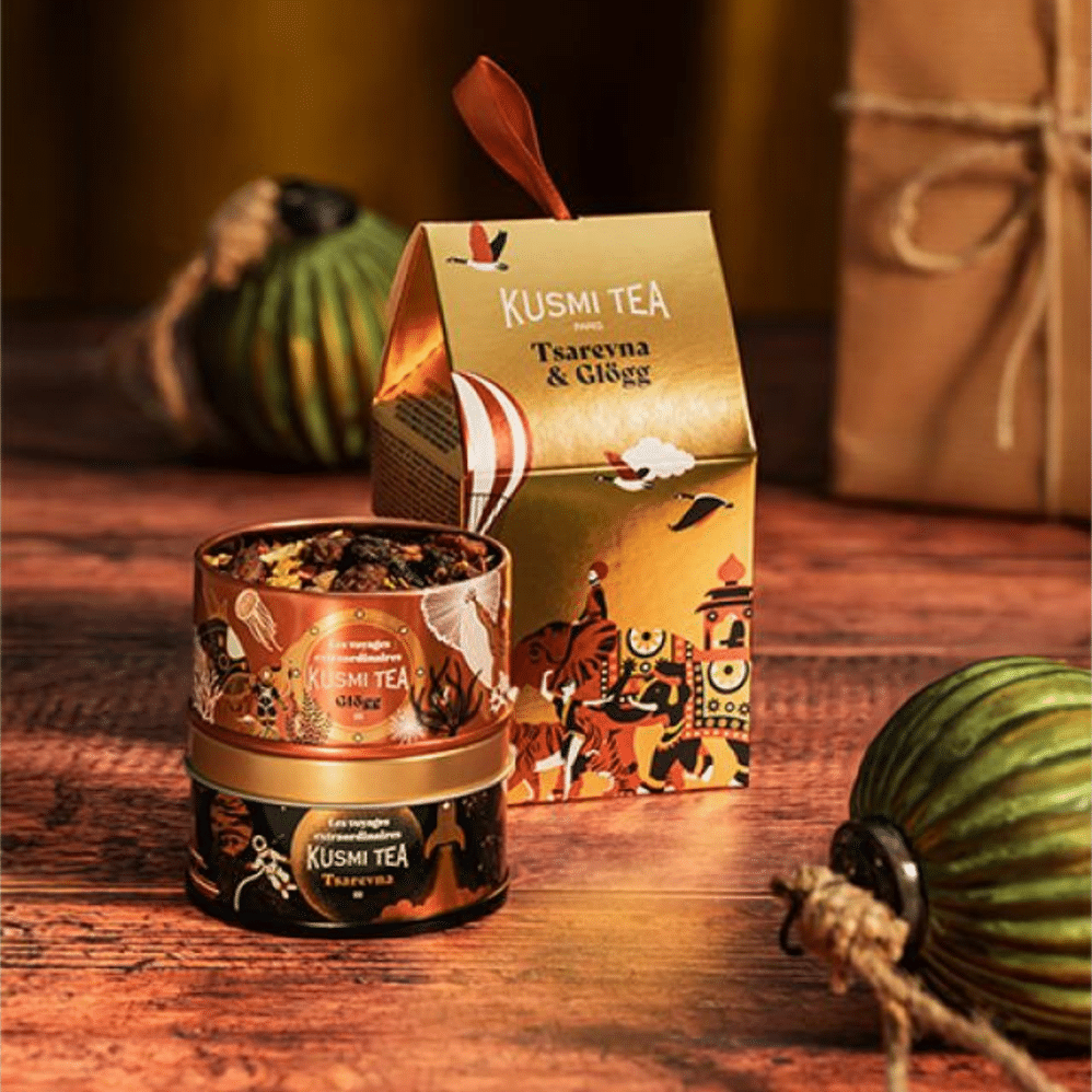 • Glögg (Sazonal de Inverno): A infusão natalícia da Kusmi Tea livre de teína, com especiarias (canela e cardamomo), hibisco e groselha, inspirada no tradicional vinho quente nórdico.